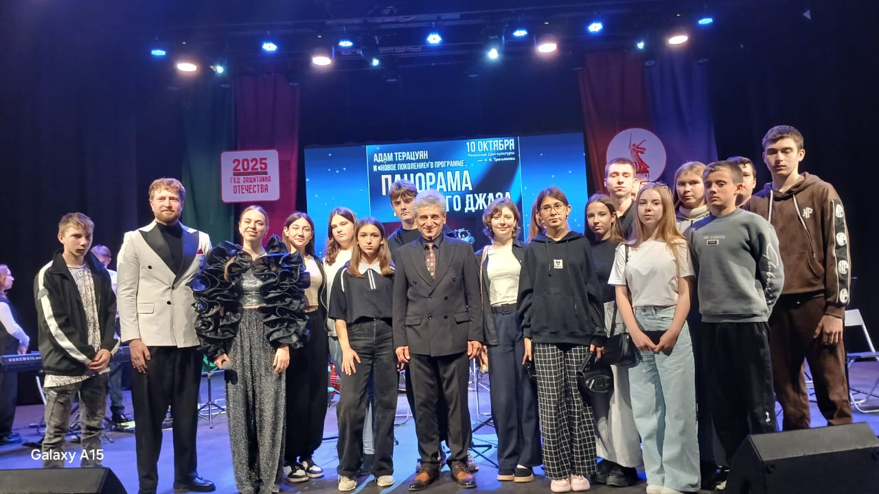 10 октября в РДК с.Покровское прошел концерт под руководством Адама Терацуяна с программой "Панорама Донского джаза". Обучающиеся 6-11 классов достигшие возраста 14 лет смогли посетить этот концерт купив билеты по Пушкинским картам. После музыкальной программы у наших ребят была возможность сфотографироваться на сцене с джазовыми музыкантами.
